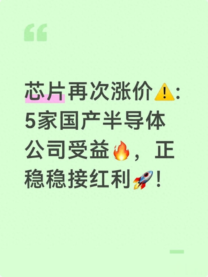 最后想问问大家:你觉得这次芯片涨价潮会持续多久?这5家公司里,你最看好哪一个的长期潜力?欢迎在评论区留下你的观点,我们一起交流探讨。如果你觉得这篇文章对你有帮助,别忘了点赞、收藏,也可以转发给身边关注半导体的朋友。