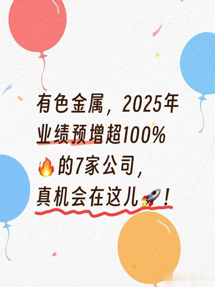 2026年开年,A股有色金属板块就释放出明确的业绩回暖信号。截至1月26日,已有7家有色上市公司披露2025年度业绩预告,净利润同比增长中值全部超过100%,其中3家实现扭亏为盈。这一数据并非市场炒作,而是来自上市公司的官方信息披露,具备较高可信度。